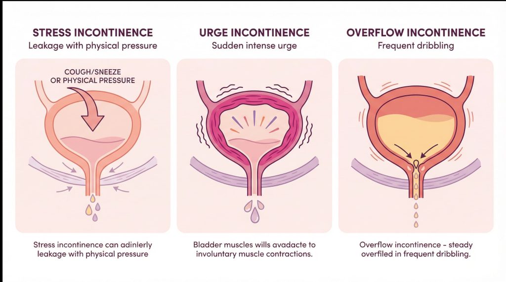 Doctors often group bladder control issues into categories to help guide evaluation and treatment.